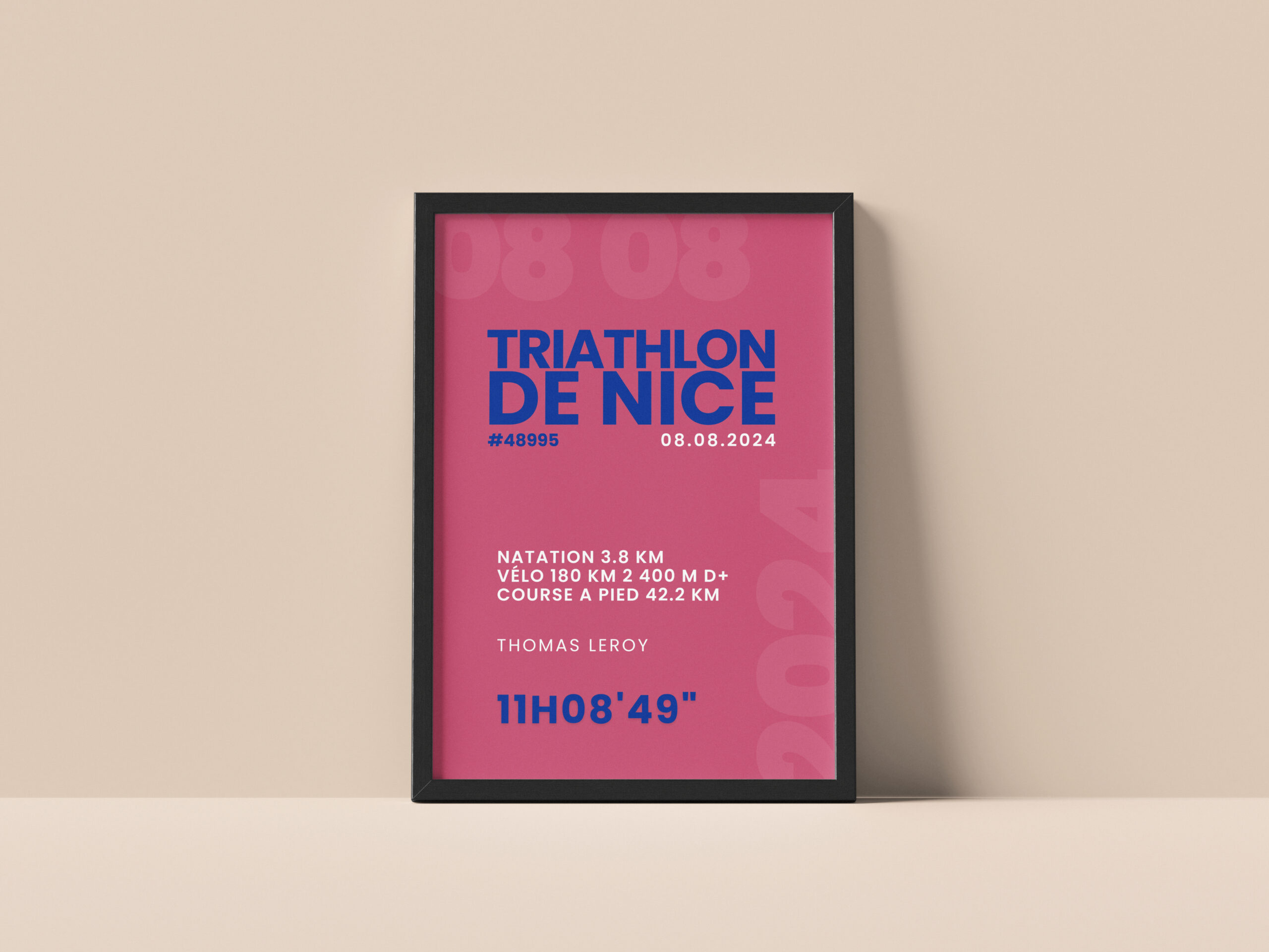 Nos créations combinent design minimaliste, détails sportifs et touches personnelles afin de transformer vos données (temps, distance, dénivelé, dossard, citation, prénom…) en un souvenir élégant à afficher fièrement chez vous ou à offrir en cadeau.